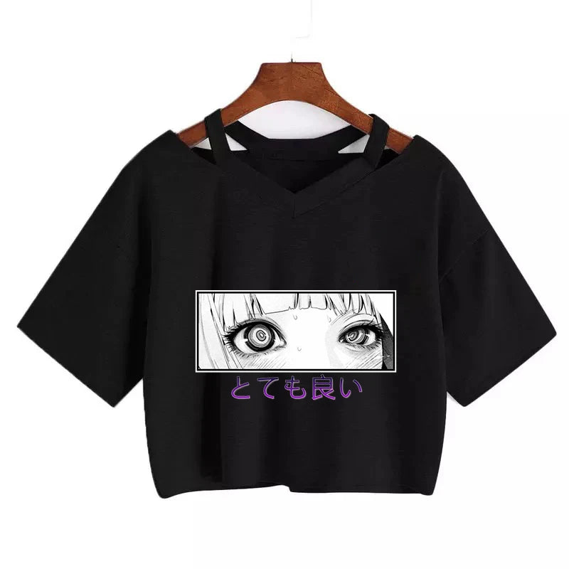 Tricou femei amuzant anime tricou haine gotice y2k elegant Harajuku supradimensionat topuri-tee Ulzzang negru femeie top casual sling tee